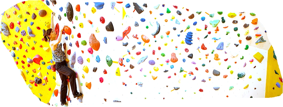 スタッフが、ジムご利用の注意事項/安全上の注意事項のご説明/準備運動/クライミングのルール説明を行ないます。その後、2~3課題を 一緒に登ります。動きやすい服と靴下のご用意だけで、ボルダリングに挑戦できます!