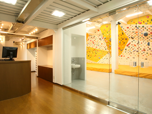 これまでロックガーデン神戸に来店された一流クライマー達を地味ながらも魅了してきたルーフスペース。心地よい間接照明だけでなく本当に強いクライマーになる秘密が隠されています。