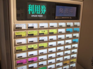 ❸「券売機にて本日ご利用のチケットをお求め下さい」カウンター横に券売機(現金のみ)がございます。
