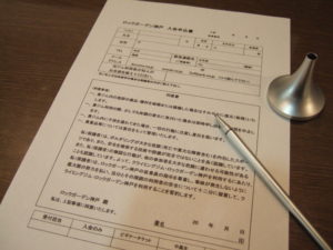 ❹「入会申込書をご記入下さい」ご利用頂く全ての方に会員登録をお願いしています。