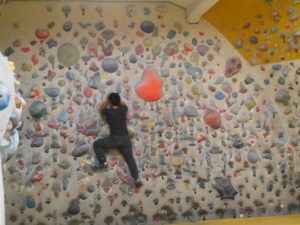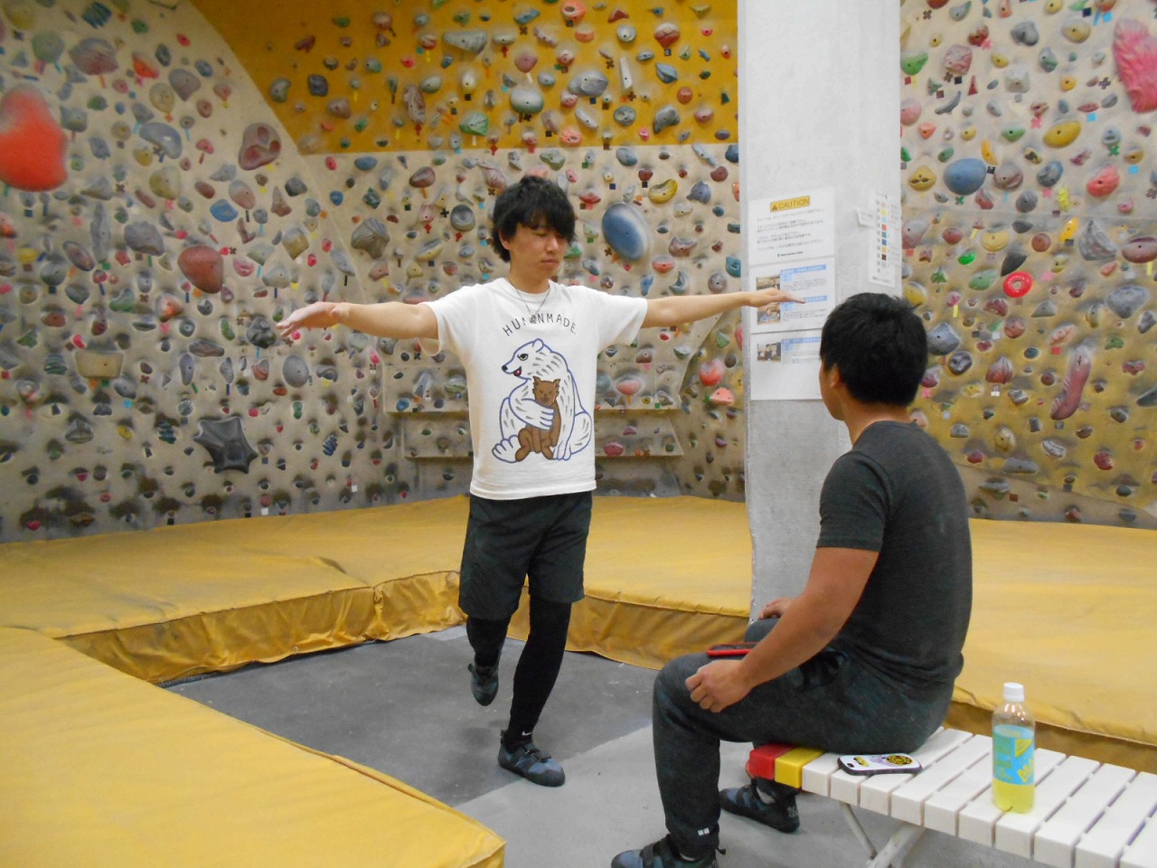 そんな中、ボルダリング初体験の大学生達が登りに来てくれていたので、