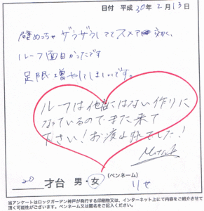HOME > お客様の感想 > お客様の感想2月13日(火)お客様の声 2018年2月24日 2019年6月18日 Twitter Share Pocket Hatena LINE コピーする -お客様の感想