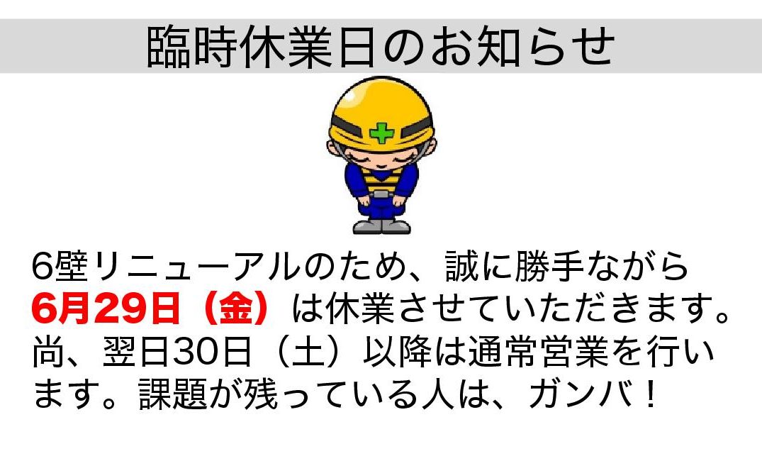 HOME > お知らせ > お知らせ06月29日(金)臨時休業のお知らせ 2018年6月14日 2019年6月18日 6壁リニューアルのため、誠に勝手ながら2018年06月29日(金)は休業させていただきます。 尚、翌日30日(土)以降は通常営業を行います。 Twitter Share Pocket Hatena LINE コピーする -お知らせ