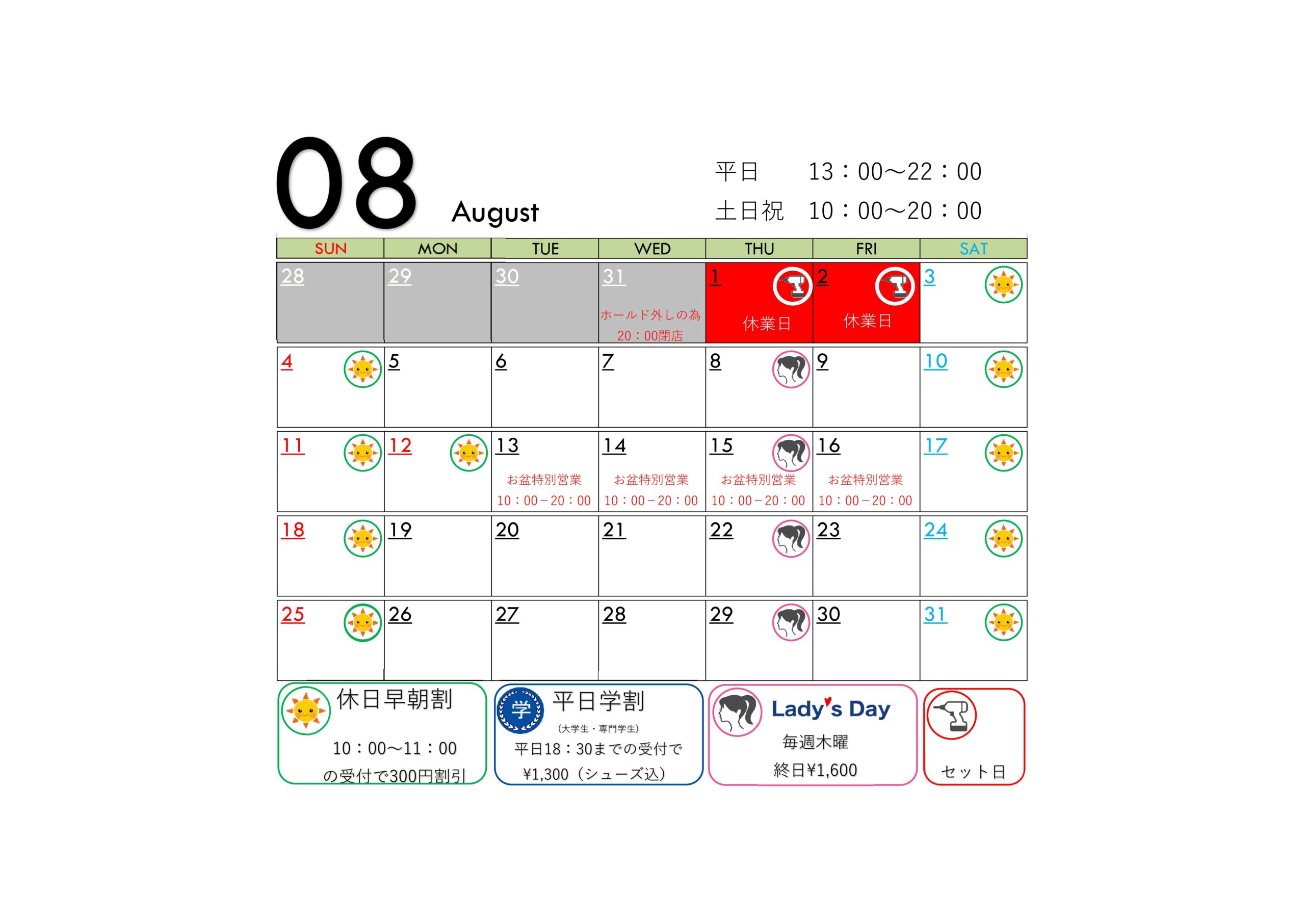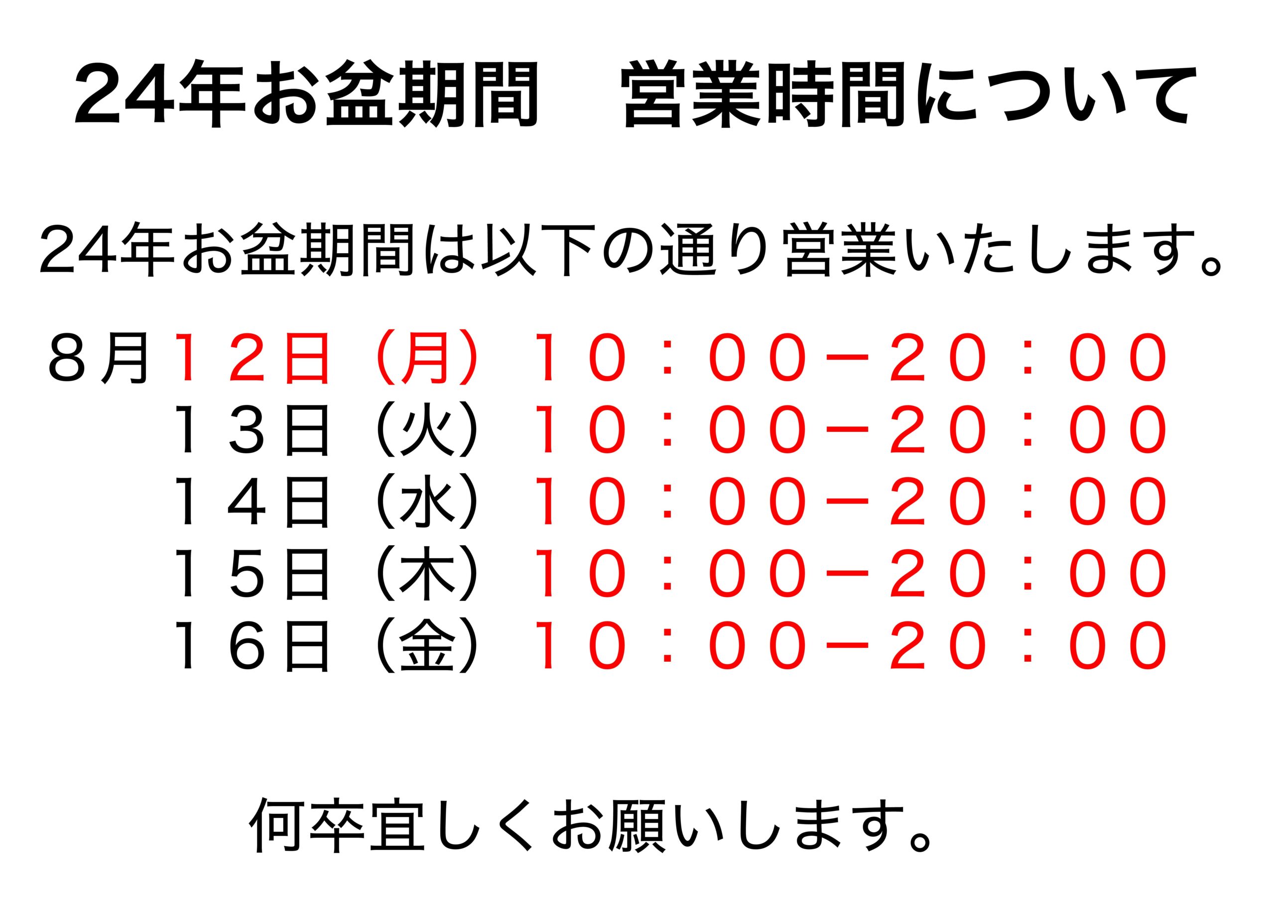 お盆期間は、土日祝日営業となっており営業時間に変更がございます。