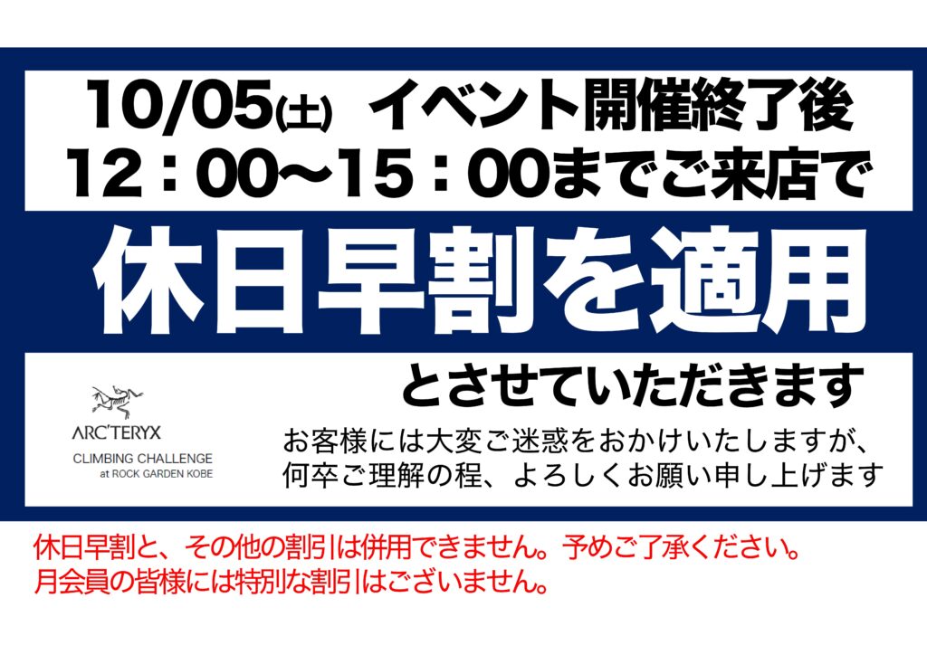 10月05日(土)、アークテリクス主催のスペシャルイベント開催により午前中は通常営業を行えません。
