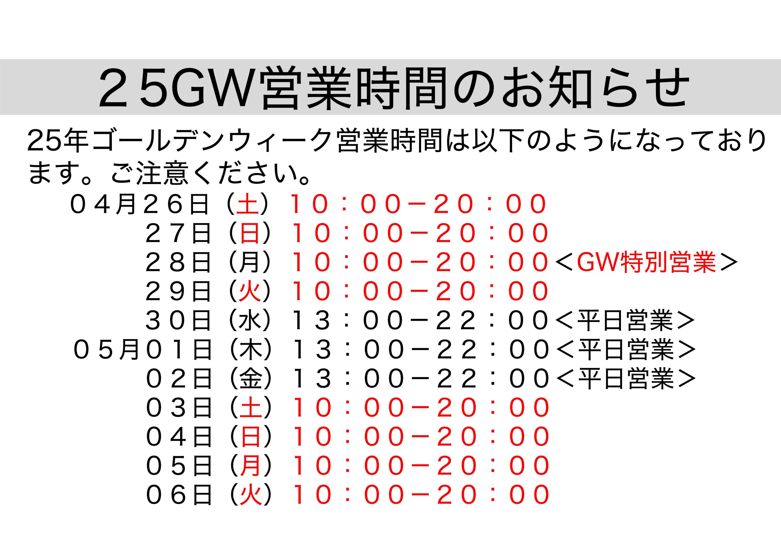 2025年05月スケジュールについて