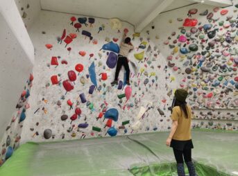本日はクライミングが🔰初めて🔰の男性人組でした✨ 一通りの説明を終えた後は各々目標課題を頑張って登っていました。 黒い服の男性はマンスリー課題の6級(緑テープ)に挑戦していました! 何度もトライを重ね、最適な足の位置や手順を覚えていきます。 ゴール一手前まで到達できたのですが・・・ 開始して2~3時間が経過していたので、腕の力が残っておらず撃沈でした💦 かなり悔しそうにしていましたが「楽しかったです」と ...